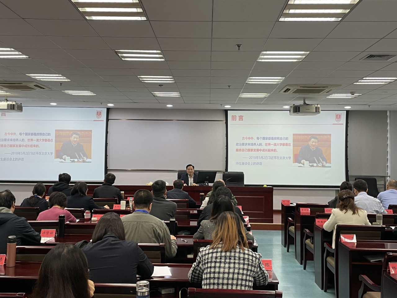 课程开始之前,兰青书记与我校全体学员合影。