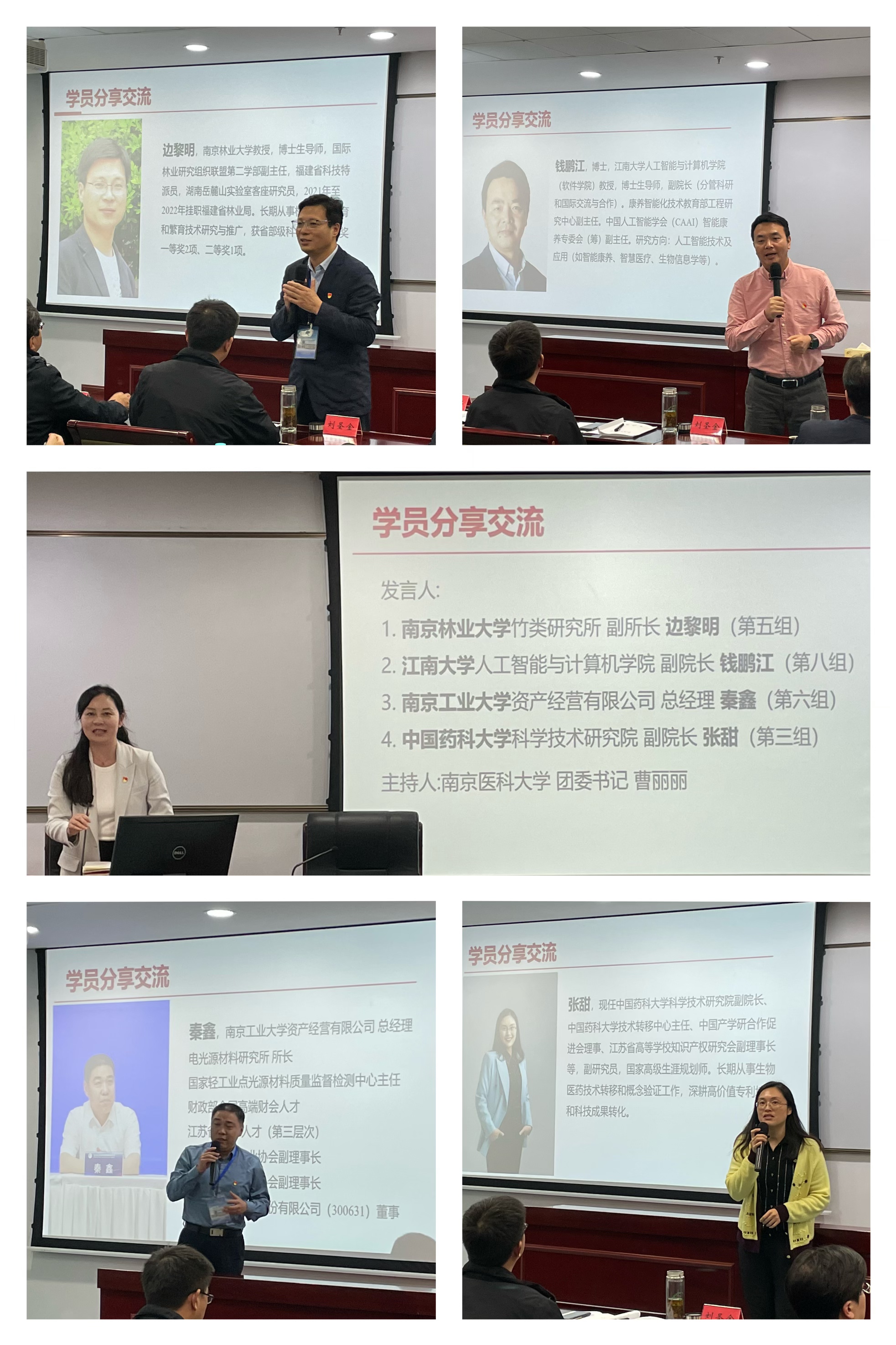 学员交流分享环节,来自南京林业大学、江南大学、南京工业大学、中国药科大学等高校的4位学员,结合本单位服务社会的特色举措和突出成效进行了精彩分享。